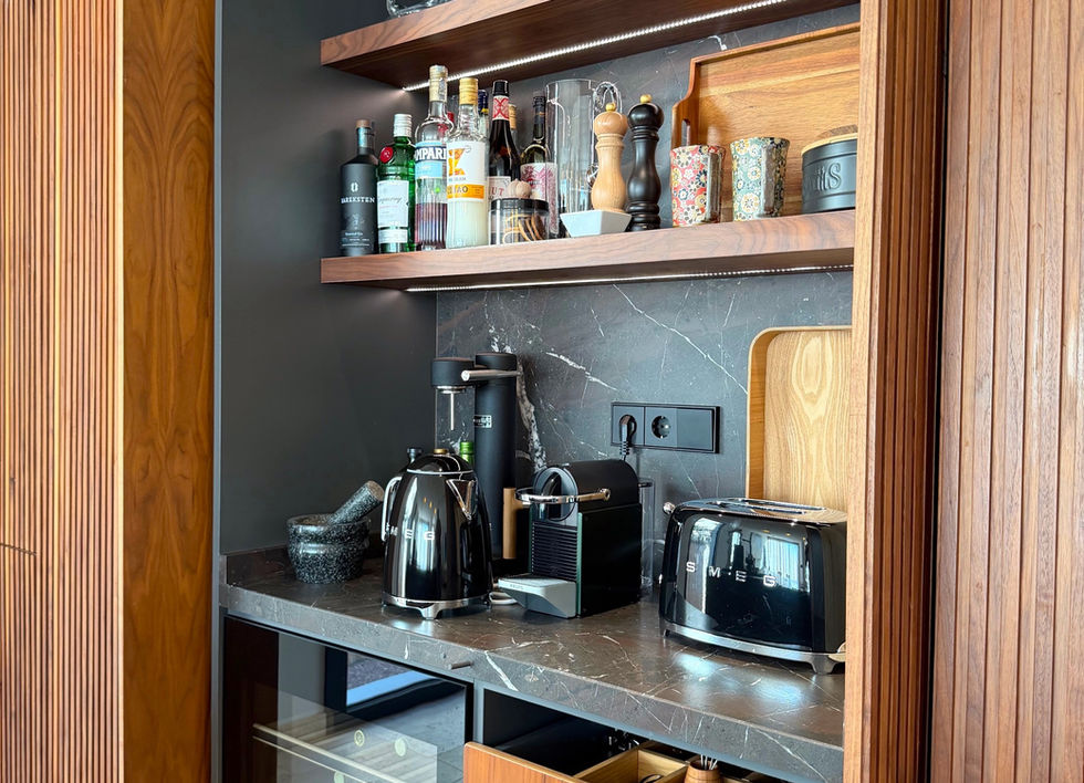 Das lichtdurchflutete Wohn- und Esszimmer mit Kamin geht fließend in die hochwertige, offen gestaltete Küche aus edlen Materialien über. Ein Ort, der Wärme, Stil und Wohnlichkeit perfekt miteinander verbindet und sofort ein Gefühl von Zuhause vermittelt.