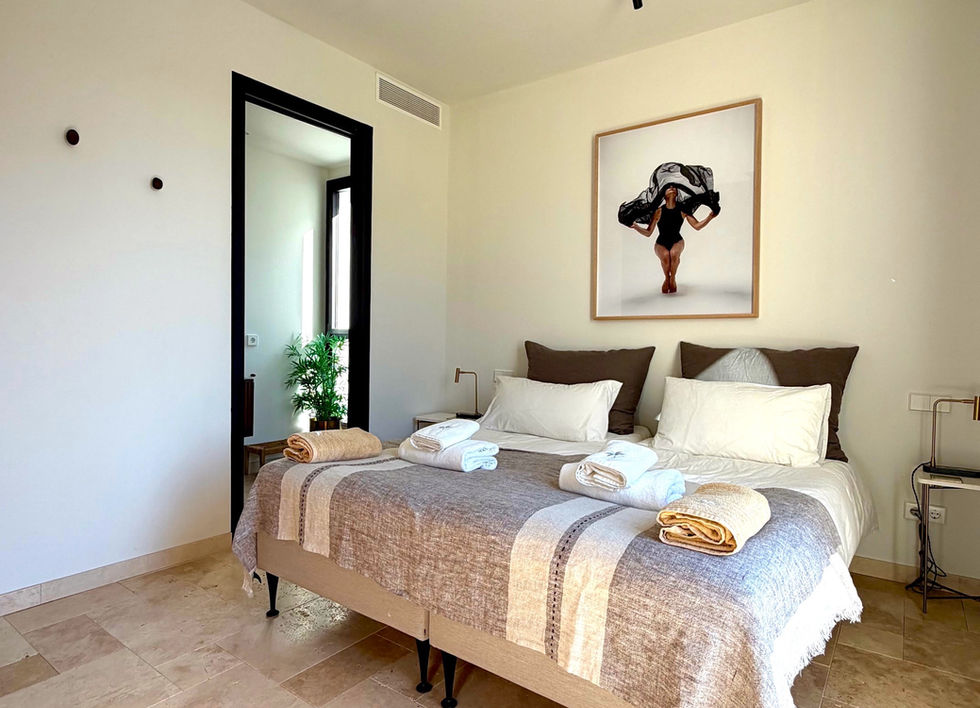 Die Villa verfügt über vier großzügige Schlafzimmer mit jeweils eigenem Bad en Suite, gestaltet in einem eleganten, reduzierten Design. Ein Schlafzimmer befindet sich im Erdgeschoss, drei weitere im Obergeschoss. Der Master-Bedroom begeistert zusätzlich mit einem wunderschönen Blick auf das Meer – ein Ausblick, der jeden Tag aufs Neue inspiriert.